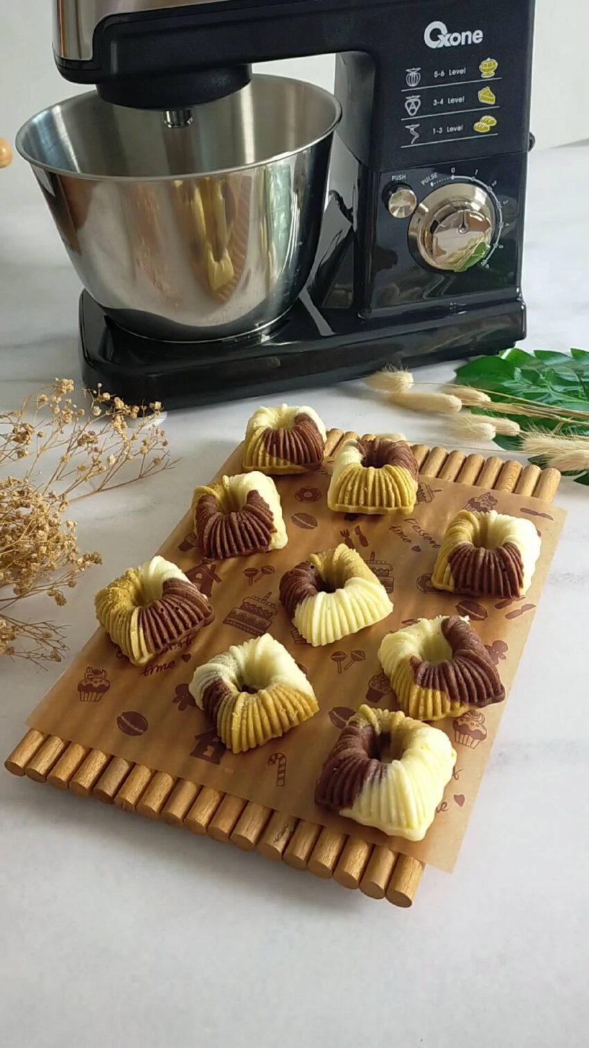 - • Masukkan kedalam oven yang sudah dipanaskan sebelumnya, menggunakan api 160• atas bawah, oven kurang lebih 30-35 menit (sampai matang,cek dengan tes tusuk). Dinginkan.