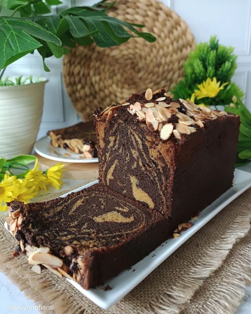 Marble Choco Almond Cake: Kelezatan Marmer Cokelat Bertabur Almond yang Memikat